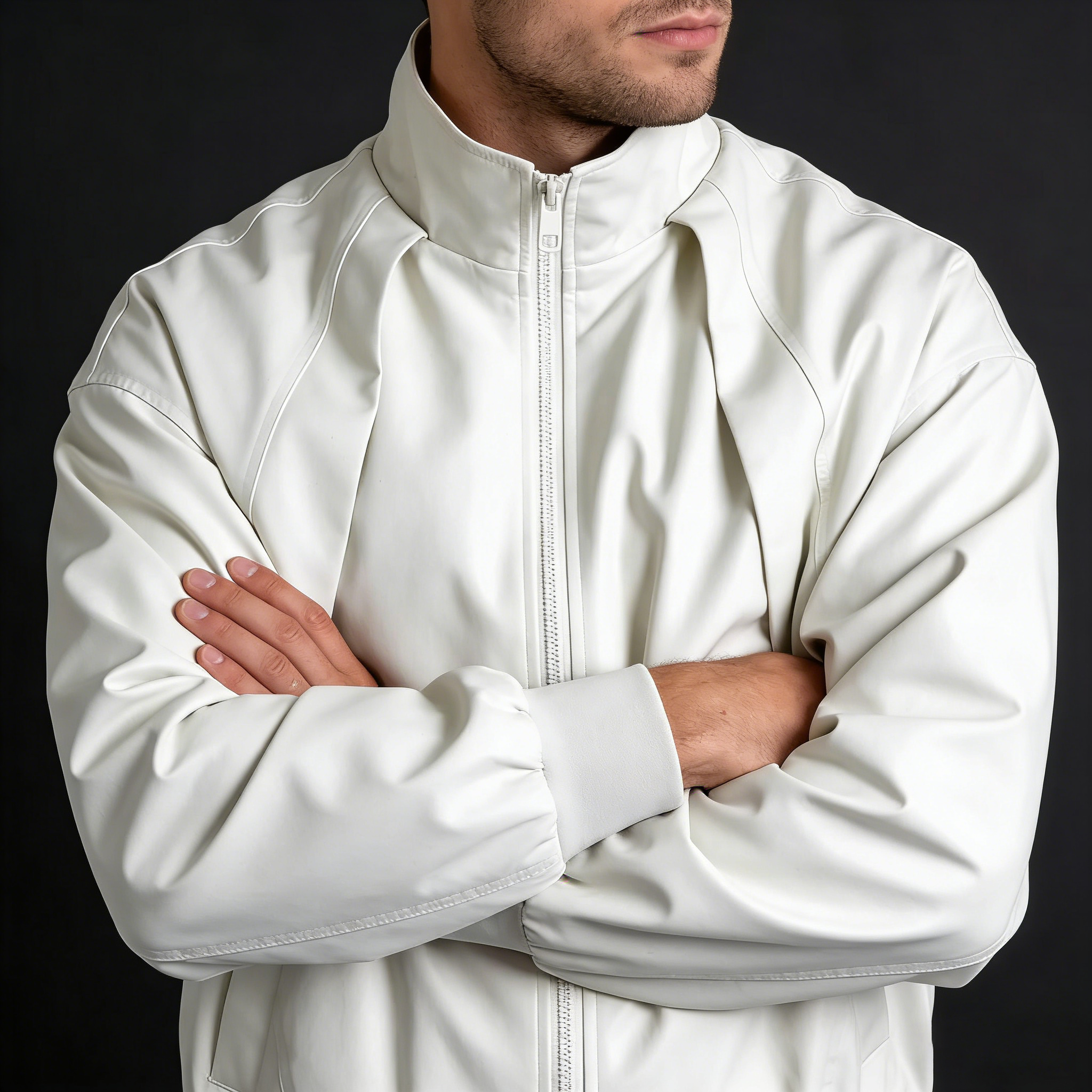 The modern stand collar is one of the defining features of this jacket, adding a refined and structured look without feeling restrictive. The half-high collar frames the neckline naturally, enhancing the overall silhouette while providing extra protection against wind and cooler air. This design detail elevates the jacket from basic casual wear to a more polished, urban-ready style.